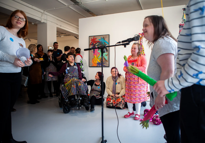 This project provided an important opportunity to contribute to the debate that artists with learning disabilities have credible and valid insights and expertise to offer. It aimed to throw light on the shifting role of the collaborative artist within supported studios as dynamic, listening and socially engaged. The exhibition realized two aims: To celebrate the creativity of artist Johnny Carroll Pell and to present the collaborative journey and processes that learning-disabled and neurodivergent Rocket Artists explored in curating the show. The team documented and reflected on their explorations, asked questions, provoked and negotiated, made observations and devised creative responses to their experiences. In exploring what it is like to be artists charged with making decisions about the artworks of another, the group were able to reflect on what individual artists bring in order to collaborate and move forward with integrity.